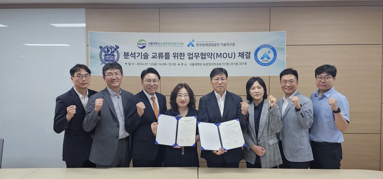 한국광해광업공단(사장 황규연, 이하 ‘KOMIR’) 기술연구원과 서울대학교 농생명과학공동기기원(이하 ‘NICEM’)은 12일(금) 서울대에서 특화분석기술 교류를 통한 연구 지원 체계 향상 및 분석기술 선진화를 위한 업무협약을 체결했다고 밝혔다.