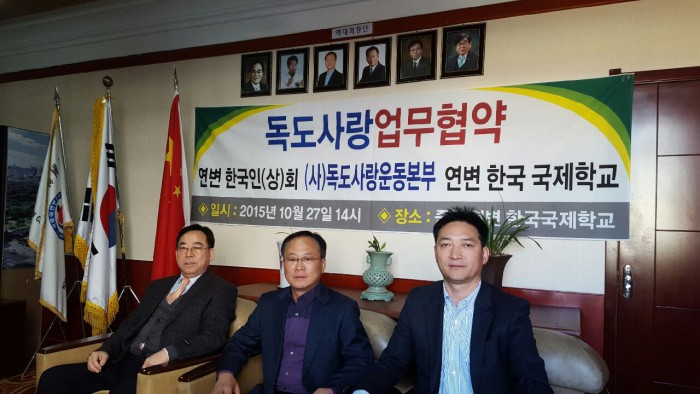 (서울=포커스뉴스) 해양수산부 인가 사단법인 독도사랑운동본부는 27일 연변한인회 사무실에서 연변한국인(상)회와 독도홍보 및 교육, 탐방에 관한 업무 협약식을 체결했다고 29일 밝혔다.