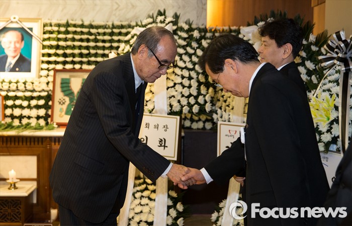 (서울=포커스뉴스) 이홍구 전 국무총리가 15일 오전 서울 서대문구 신촌세브란스병원 장례식장에 마련된 故 이만섭 전 국회의장의 빈소를 찾아 유가족을 위로하고 있다.
