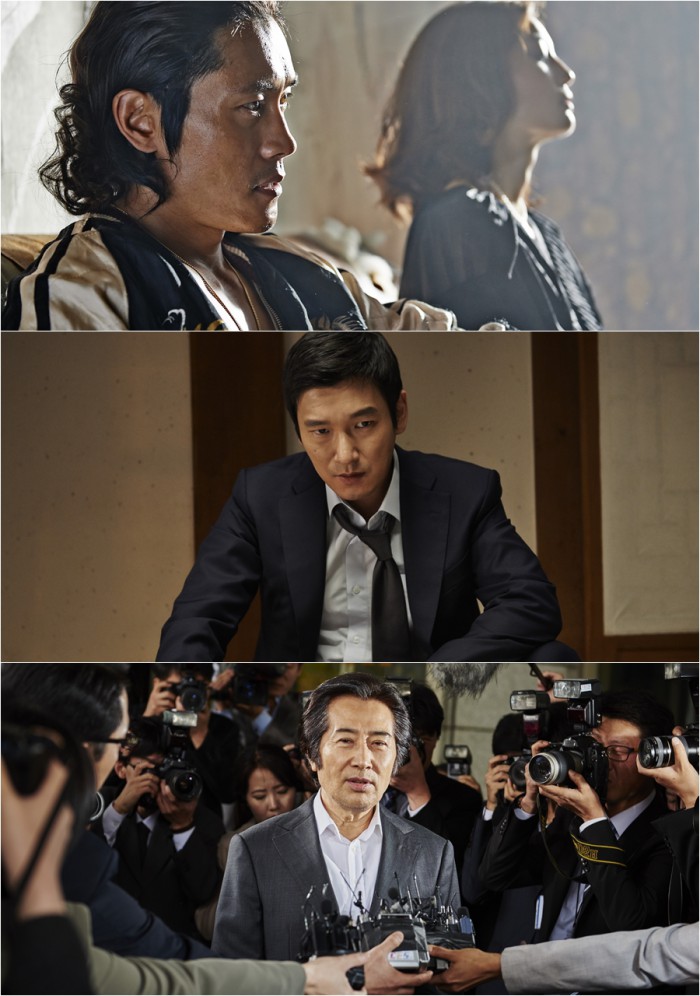 | △ 배우 이병헌, 조승우, 백윤식(상단부터) 영화 '내부자들'에서 열연하는 모습. <사진제공=쇼박스> |