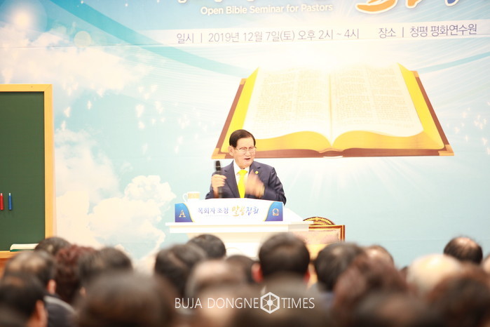 [청평=부자동네타임즈 이영진 기자]경기도 가평군 청평 평화궁전에서 성경의 예언이 실상으로 선포하는데 주력해온 신천지예수교 증거장막성전 신천지예수교회 이만희 총회장이 7일 전국 목회자들을 상대로 말씀대집회를 개최하면서 올 한해 실상복음 전파의 대단원을 마무리했다.