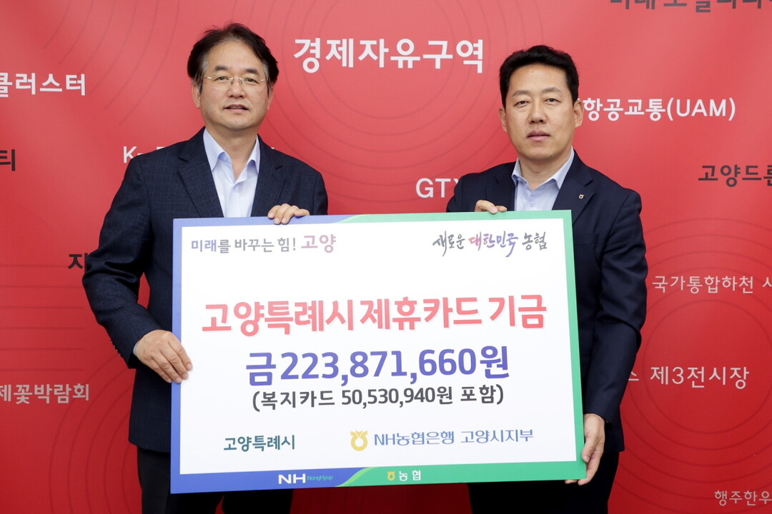 [부자동네타임즈 = 김인수 기자] 고양특례시는 지난 7일 NH농협은행 고양시지부(지부장 오영석)로부터 제휴카드 적립기금 2억 2,387만 원을 수령했다고 밝혔다.