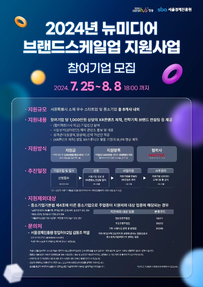 - 7월 25일부터 8월 8일까지 서울스타트업플러스를 통해 온라인 접수