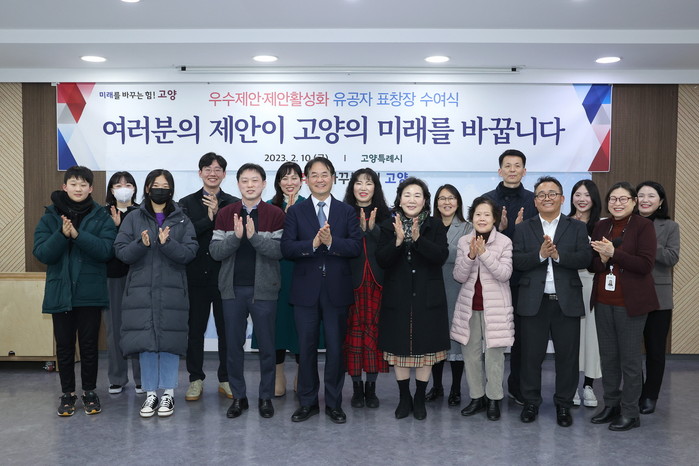 [부자동네타임즈 김인수기자] 고양특례시(시장 이동환)는 지난 10일 ‘우수제안·제안활성화 표창장 수여식’을 고양시청 대회의실에서 개최했다고 밝혔다.