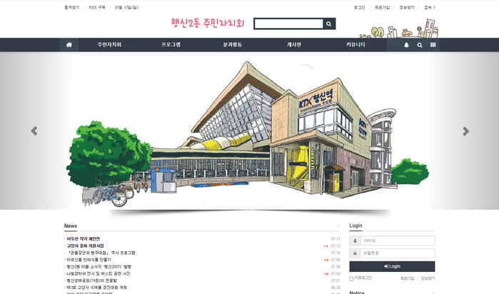특히 메인 페이지에는 행신2동 그림지도 및 행신역(KTX, 경의중앙선) 그림을 슬라이드로 보여주고 있어 행신2동만의 특색을 표현하고 있다.
