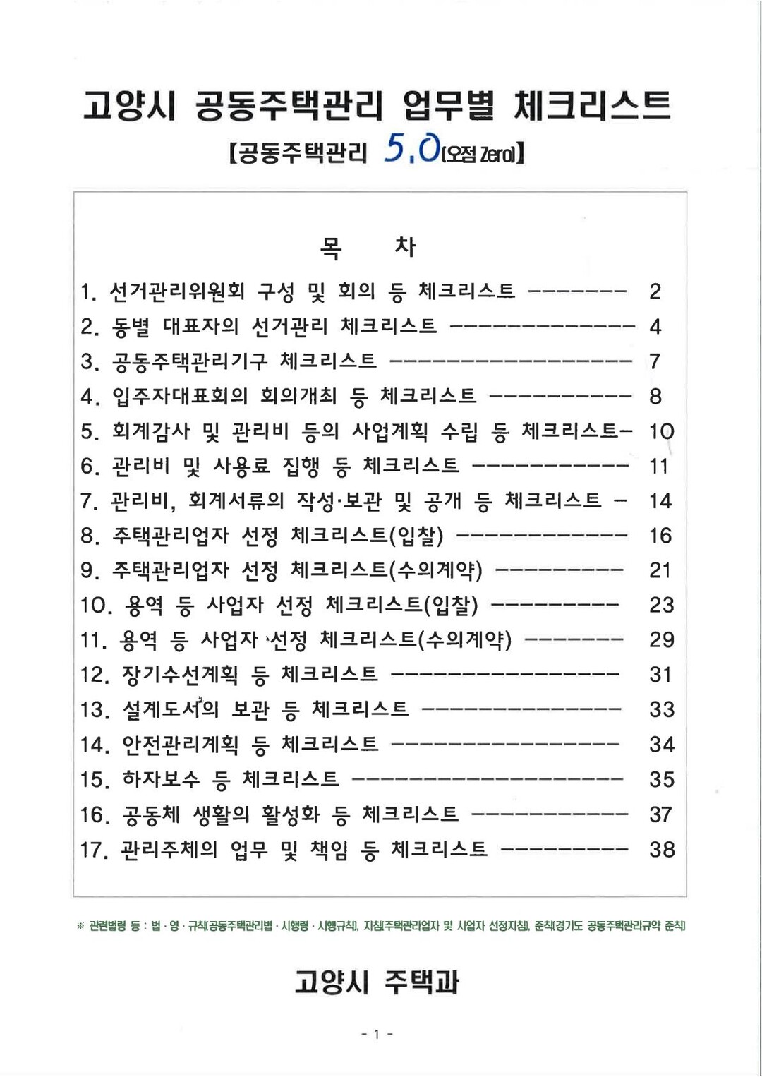 한편 개정된 공동주택관리 업무별 체크리스트는 고양시청 누리집-정보공개-행정자료실에서 확인할 수 있다.