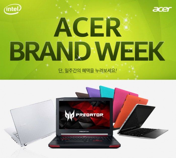 에이서에 따르면 9일부터 제조사 특별 할인 가격에 추가로 옥션과 지마켓에서 제공하는 5% 중복 할인 쿠폰을 이용해 구매할 수 있는 '브랜드 위크' 프로모션 행사를 개최한다.