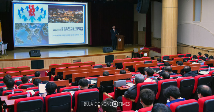 먼저 천 교수는 ‘화학물질취급 사업장의 환경 안전과 지역사회에서의 역할’을 주제로 40분간 발표했다.