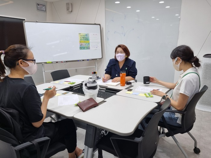 [사진설명] 환경챌린지에 참여한 청년들이 활동 소감을 나누고 있다.