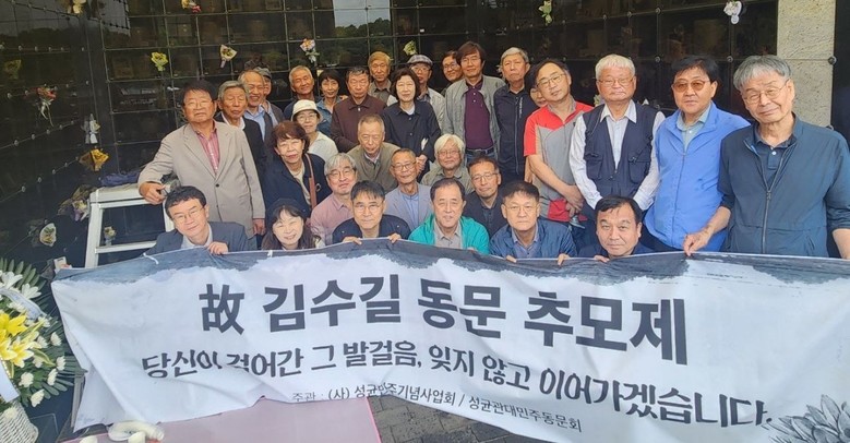 이날 잇달아 개최된 2개 추모제 참석자들은 한두 사람만 제외하면 거의 같았다. 즉 고 전경희 선생과 동기동창인 성균관대 80학번 등 80년대 동문 약 13명과 고 김수길 선생과 함께 유신체제에 저항했던 권영근, 최영삼, 이진복, 이현배, 권정호, 임경석, 강은미 등 70년대 성대 동문 약 10명 그리고 아들 내외와 어린 손주 및 친오빠 등 가족 4인 등 약 25명이었다.