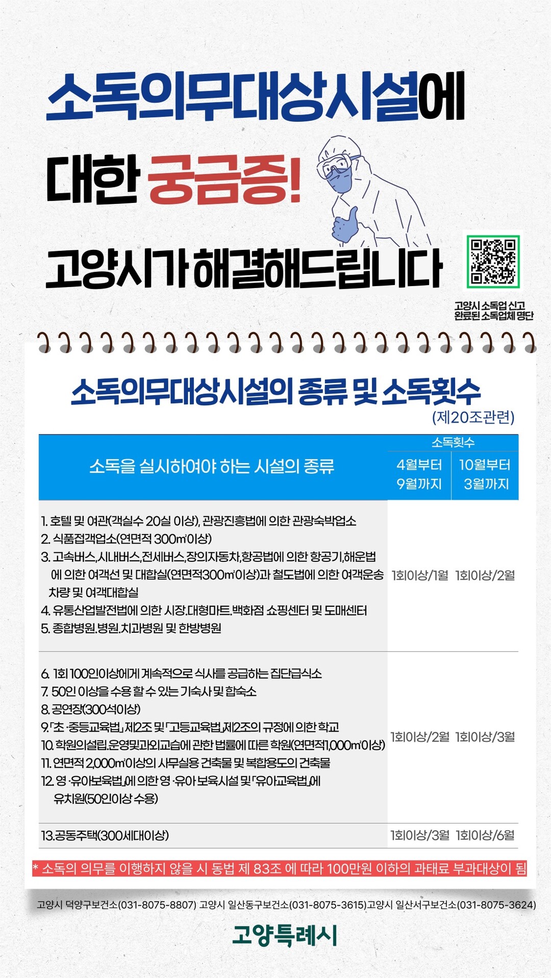 보건소는 관내 소독의무대상시설에 소독 의무를 강조하고 고양시청과 보건소 누리집, 구청 전광판을 통한 홍보에 집중하고 있다.