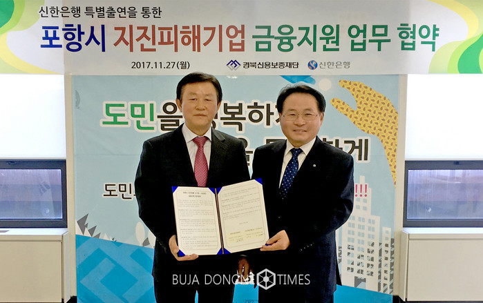 [부자동네타임즈 이현재 기자]신한은행은 경북신용보증재단과 지진피해를 입은 포항 소재 소상공인을위한금융지원업무 협약을 체결했다고 28일 밝혔다.