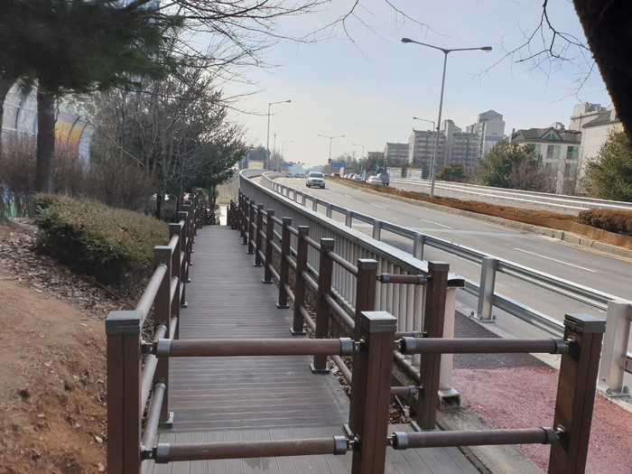 시는 2019년 6월 7천만원의 예산을 투입해 폭1.5m, 길이 49m의 나무계단을 설치했다. 2020년 2월 4일 일산교 교량보수공사가 완료되며 난간해체 및 통행조치가 완료됐다.
