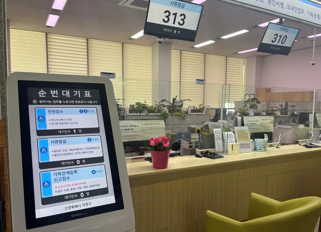덕양구는 시민들이 더 쉽고 빠르게 민원 창구를 이용할 수 있도록 복잡했던 순번대기표 발권기 화면을 교체했다. 또한 초록 식물을 곳곳에 배치해 시민들에게 편안함과 안정감을 주는 환경을 마련했다.