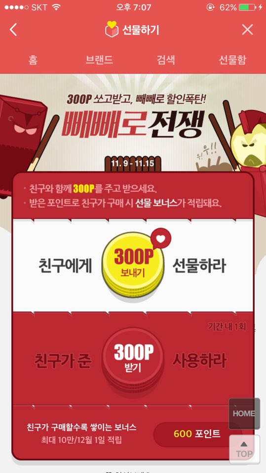 카카오(대표이사 임지훈)는 이달 11일 하루 동안 카카오톡 선물하기에서의 빼빼로 판매 건수가 150만을 넘었다고 13일 밝혔다. 1초당 17개의 빼빼로가 팔린 셈이다.