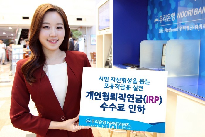 [부자동네타임즈 이현재 기자]우리은행은 고객 수익률 향상을 통해 서민 자산형성에 기여하고자 오는 20일부터 개인형퇴직연금(IRP) 가입 고객을 대상으로 개인형퇴직연금(IRP) 수수료를 0.05%p~0.12%p 인하한다고 15일 밝혔다.