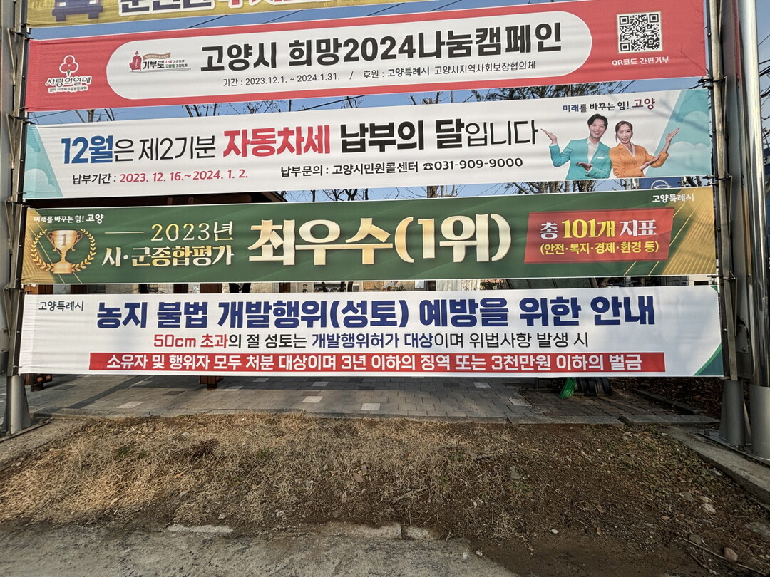 고양특례시 도시계획 조례상 50cm를 초과하는 절·성토의 경우 허가를 받게 되어 있으나 이에 대한 인식이 부족하여 허가를 받지 않고 농지성토하는 경우가 증가하고 있다. 이에 구는 주요 지점에 현수막 게시, 행정복지센터 내 단체회의 시 안내문 배부 등을 통하여 허가 기준을 안내할 예정이다.