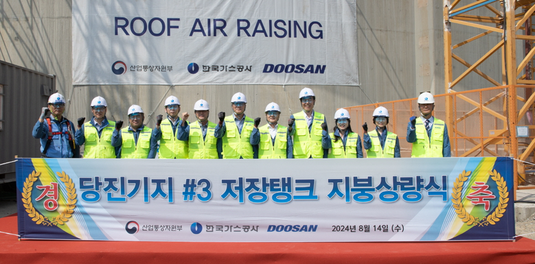 한국가스공사(사장 최연혜)는 8월 14일, 당진LNG생산기지에서 27만㎘ LNG 저장탱크 4기의 지붕 상량(Roof Air-Raising)을 성공적으로 완료했다고 19일 밝혔다.