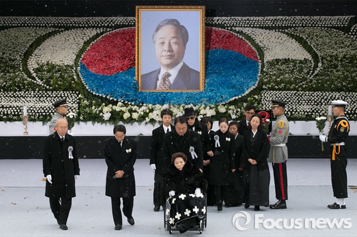 (서울=포커스뉴스) 26일 오후 서울 여의도 국회에서 엄수된 고(故) 김영삼 전 대통령 영결식에서 부인 손명숙 여사와 차남 현철 씨를 비롯한 유가족들이 헌화·분향을 마치고 자리로 향하고 있다.