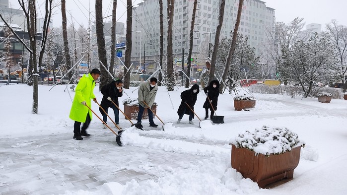 또한 일산서구청 직원들과 함께 제설차가 진입하기 힘든 청사 앞 인도와 건널목에 쌓인 눈을 청소하여 청사를 이용하는 시민들의 안전과 편의를 확보하였다.