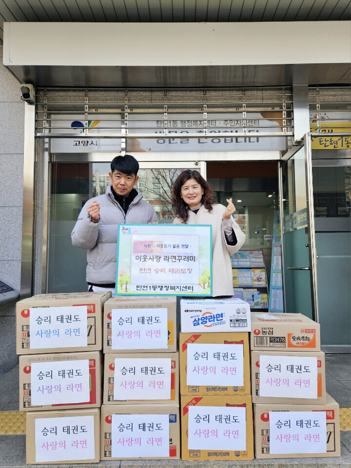 윤순희 탄현1동장은 “새해가 시작되는 시기에 나눔을 실천해준 승리태권도장 관계자와 원생들에게 감사드린다. 아이들의 소중한 마음을 담은 라면을 지원이 필요한 취약계층에 소중히 잘 전달하겠다”라고 말했다.