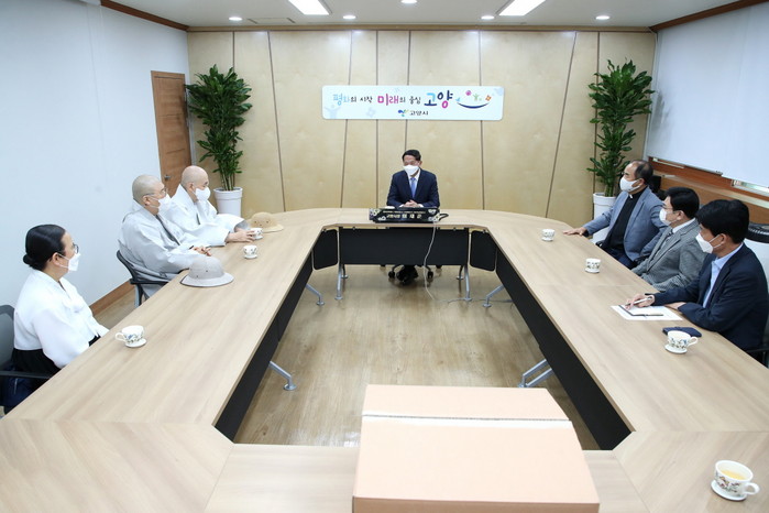 전달식은 이재준 시장과 고양시 종교계 4대 종단(기독교, 천주교, 불교, 원불교) 대표 지도자들의 참석 하에 지난 7일 고양시청 열린회의실에서 진행됐다.