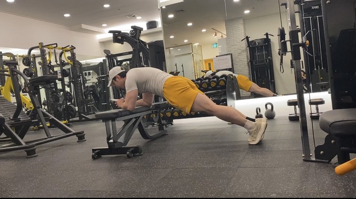 인크라인 플랭크 써킷 트레이닝 1세트 1번 진행 - 20초 휴식 - 2번 진행 - 20초 휴식 -3번 진행 - 20초 휴식 -4번 진행 -20초휴식 - 5번진행-20초 휴식 -다시 바로 이어서 1,2,3,4,5 번까지 총 2번 진행하자 총 4세트 진행.