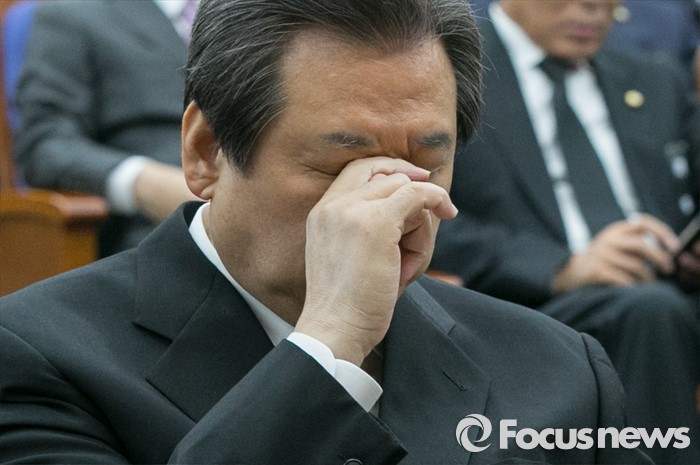 | △ 지난 26일 오전 서울 여의도 국회에서 열린 새누리당 의원총회에 참석한 김무성 대표가 얼굴을 만지고 있다. <사진제공=포커스뉴스> |