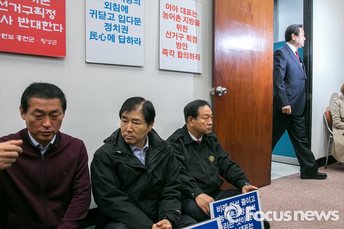 지난 12일 선거구 획정을 두고 여야 지도부가 가진 4+4 회동이 결렬될 당시 '농어촌 지방 주권 지키기 의원 모임' 소속 여당 의원들은 대표실을 점거하고 농성까지 했다.