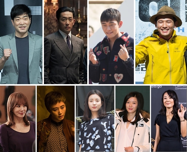 △ 제52회 대종상영화제 남우주연상 후보에 오른 손현주, 하정우, 유아인, 황정민(상단 좌측부터)과 여우주연상 후보의 엄정화, 김 혜수, 한효주, 전지현, 김윤진(하단 좌측부터)이 모두 시상식에 불참한다. <사진제공=영화 '미쓰와이프','차이나타운',CJ엔터테인먼 트, 네파, 포커스DB> |