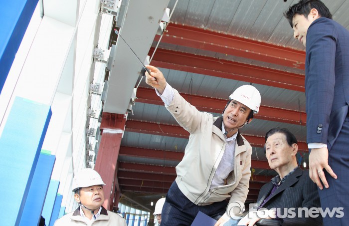 (서울=포커스뉴스) 1일 롯데그룹은 신격호(93) 총괄회장이 지난 30일 공사 중인 제2롯데월드 타워를 '깜짝 방문'했다고 밝혔다.