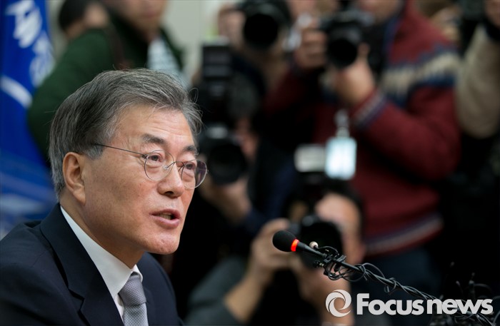 | △ 문재인 새정치민주연합 대표가 지난 3일 오후 서울 여의도 국회에서 안철수 의원이 제안한 '혁신전대' 등 현안관련 입장발표를 마친 뒤 취재진 질문에 답하고 있다. <사진제공=포커스뉴스> |