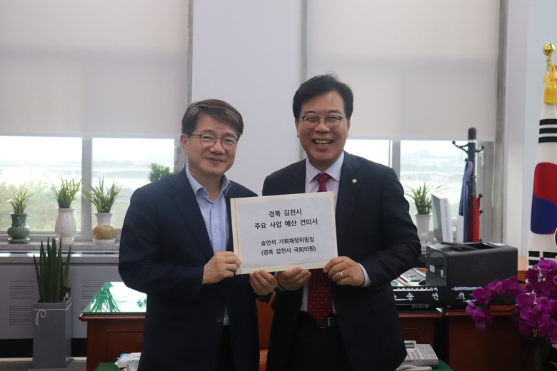 송언석 국회 기획재정위원장(국민의힘, 경북 김천)은 7월25일, 김동일 기획재정부 예산실장을 만나, 2025년 정부 예산안에 김천 발전을 위한 중점 추진 사업 예산들을 충분히 반영해줄 것을 건의했다.