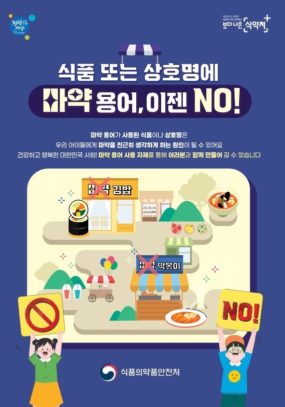 최근 마약 중독이 사회적 문제로 대두되고 있는 상황과 관련하여 음식점 등에 ‘중독될 만큼 맛있거나 좋다는 의미’로 ‘마약’용어가 무분별하게 사용되어 자칫 청소년들에게 마약에 대한 경각심을 낮추고, 잘못된 인식을 심어줄 수 있다는 우려의 목소리가 높아지고 있다.