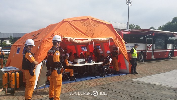 [부자동네타임즈 이채봉 기자]마사회 렛츠런파크 제주(본부장 정형석)가 지난 6월 22일(목), 제주특별자치도 소방안전본부 「道 불시 긴급구조통제단 가동훈련」와 연계해 재난안전 훈련을 실시했다. 이 날 훈련은 제주특별자치도, 소방안전본부 주관 하에 도내 35개 기관 350명이 참가했다.