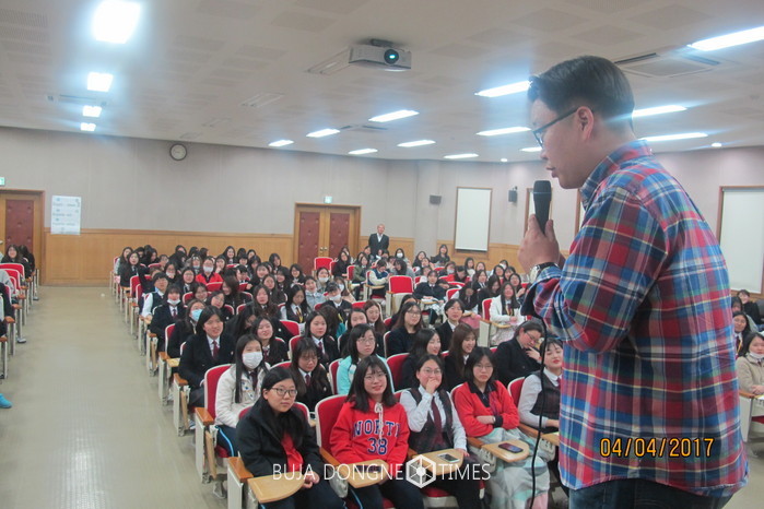 | △전남여자고등학교가 4일 저녁 광주광역시교육연수원이 지원하는 '2017년 학교로 찾아가는 청소년 특강'을 실시했다 |