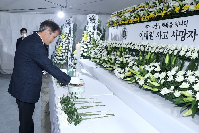 [부자동네타임즈 김인수기자] 이동환 고양특례시장을 비롯한 고양시 간부공무원들이 31일 오후 6시 ‘이태원 사고 사망자 합동분향소’가 마련된 고양시 화정역문화광장을 방문해 희생자들을 추모했다.