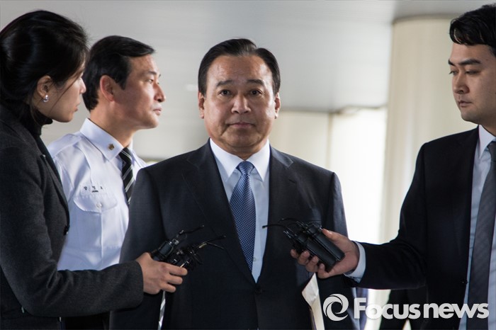 (서울=포커스뉴스) 고 성완종 전 경남기업 회장에게 불법 정치자금 수수 혐의로 기소된 이완구 전 국무총리의 세 번째 공판이 6일 오후 서울중앙지방법원에서 열렸다. 법정에 들어서기 전 이 전 총리가 취재진의 질문에 답하고 있다.