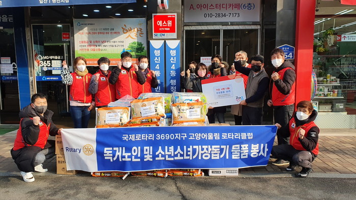[부자동네타임즈 김인수기자] 고양시 덕양구 행신4동 행정복지센터(동장 정은숙)는 지난 27일 고양어울림로타리클럽(대표 이웅중)에서 설 명절을 앞두고 복지사각지대에 놓여 있는 독거노인, 저소득층 가정을 위해 생필품 30세트를 행신4동에 후원했다고 밝혔다.