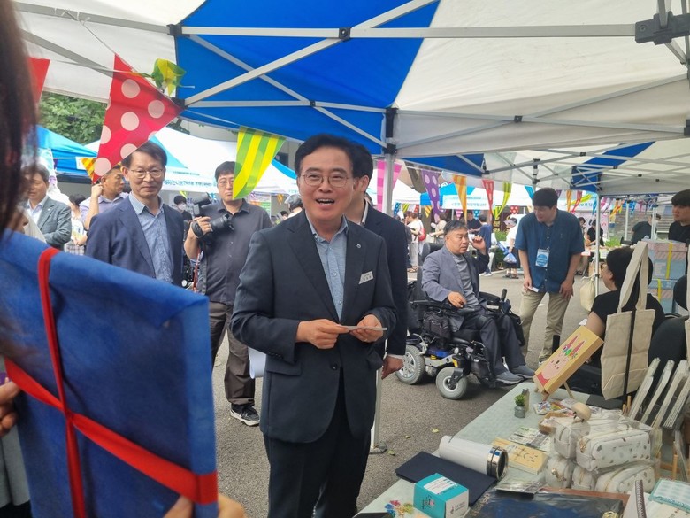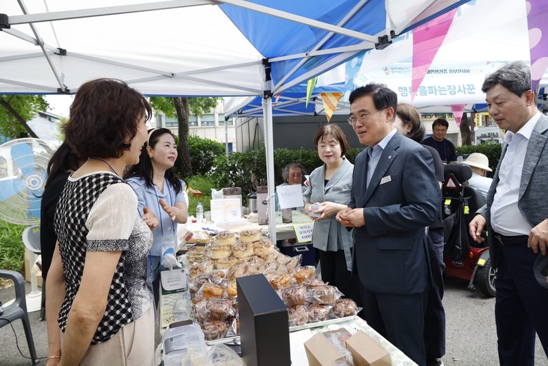 진교훈 구청장도 행사장을 찾아 업체별 판매 현황과 운영상의 애로사항을 꼼꼼히 챙겼다. 특히, 중증장애인생산품 우선 구매를 적극 독려하는 등 장애인생산품 홍보에 힘을 더했다.