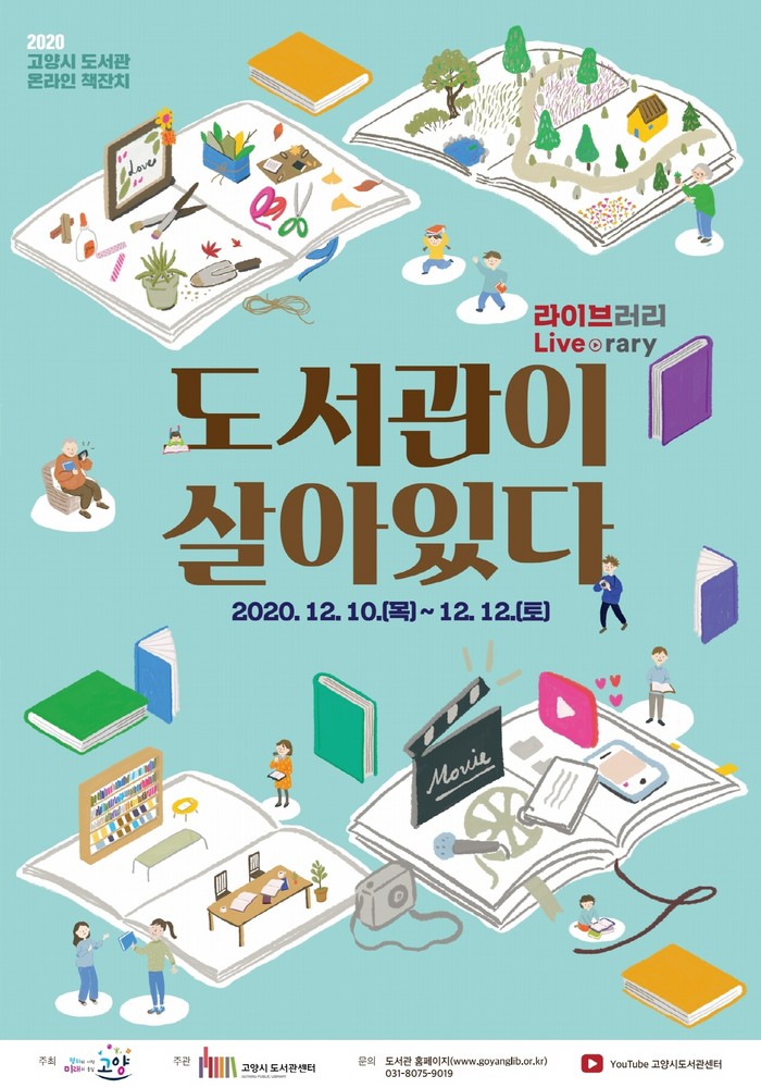 ‘2020 고양시 도서관 책잔치’의 각 프로그램은 이달 23일(월)부터 고양시 도서관센터 홈페이지에서 접수 가능하며, 기타 자세한 사항은 고양시 도서관센터 독서진흥팀으로 문의하면 된다.