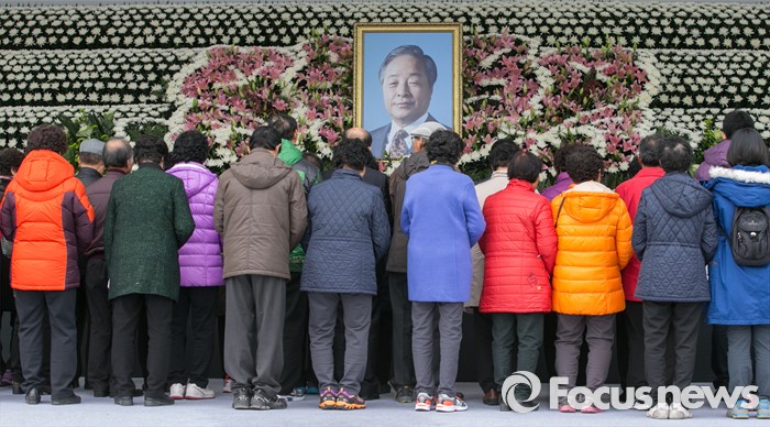 (서울=포커스뉴스) 24일 오후 서울 여의도 국회 본청 앞에 마련된 故 김영삼 전 대통령 국가장 분향소에서 방문객들이 조문을 하고 있다.