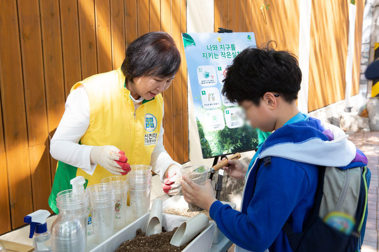 참여한 시민들은 단순히 화분 만들기에서 그치는 것이 아닌 봉사자를 통해 ▲일회용 마스크 끈 잘라 버리기 ▲담배꽁초 버리지 않기 ▲생활 쓰레기 분리수거 ▲커피 스틱·빨대 사용 줄이기 ▲장바구니 사용하기 ▲일회용품 줄이기 ▲모바일로 영수증 받기 등 환경오염을 늦추는 여러 환경정화 실천법에 대해 공유받았다.