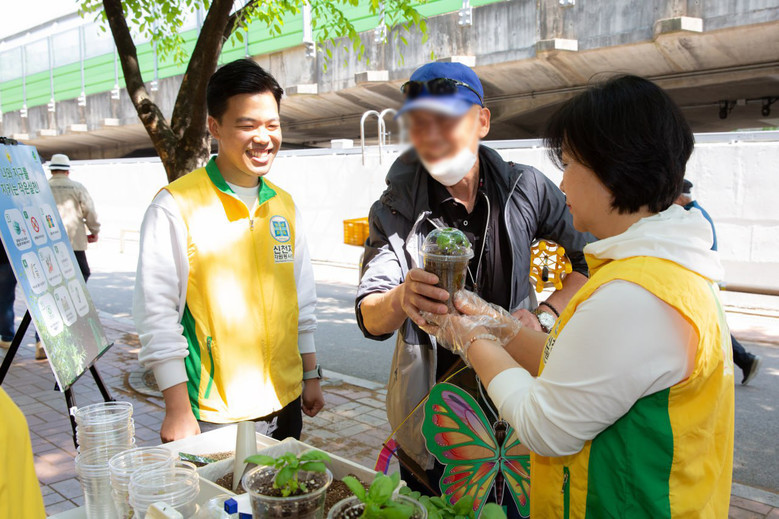 이러한 환경정책에 발맞춰 동작지부 봉사자 10명은 이날 오후 2시부터 1시간 동안 동작구에 위치한 보라매공원 후문 일대에 좌판을 설치하고 ‘정화식물 심기 체험’을 선보였다. 참여한 시민들은 재활용한 일회용 플라스틱 컵에 구멍을 뚫고 흙을 담아 바질 모종을 심어 환경 캠페인에 동참했다.