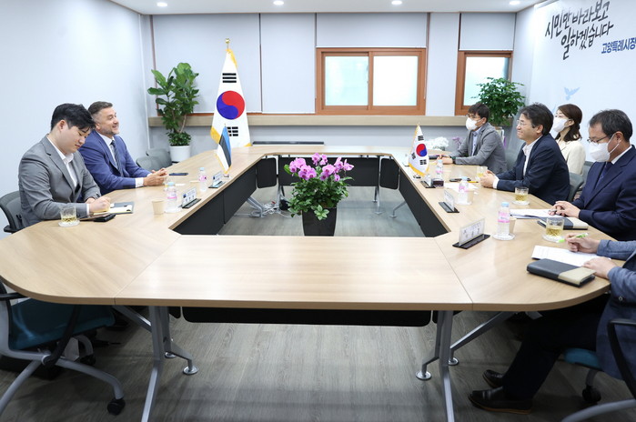 [부자동네타임즈 김인수기자] 고양특례시(시장 이동환)가 지난 8일 고양시청 열린회의실에서 고양시를 방문한 스텐 슈베데 주한 에스토니아대사와 고양시장이 면담을 가졌다고 전했다. 이 시장과 스텐 슈베데 대사는 기업유치와 스타트업 환경 노하우를 공유하고 활발한 경제분야 교류를 약속했다.