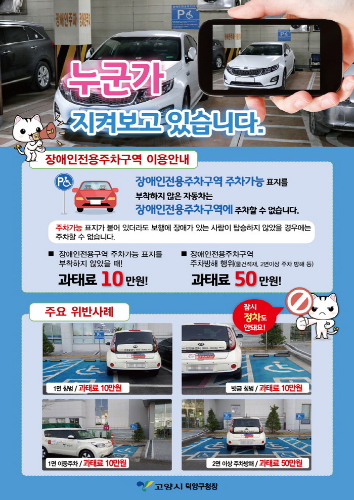 [부자동네타임즈 김인수기자] 고양시 덕양구(구청장 김운영)이 이달부터 장애인 전용주차구역 이용 안내 전단지 배포 및 현수막 게첩을 통한 홍보 활동을 실시한다.