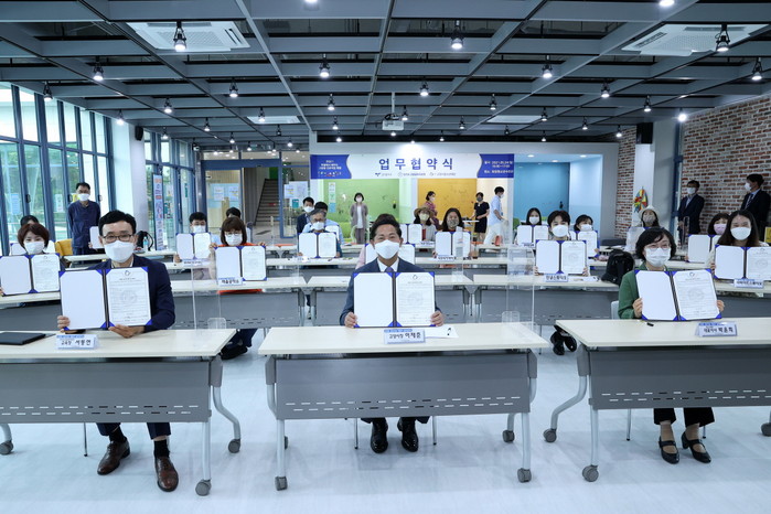 시는 학교 내 대안교실 학생들을 대상으로 학업 중단 예방 및 진로 탐색의 기회를 제공하고, 나아가 마을 주민들과 함께 청소년의 진로역량을 개발하기 위해 이번 협약을 체결했다.