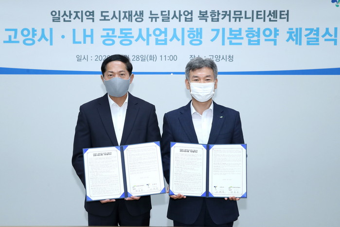 [부자동네타임즈 김인수기자] 고양시가 28일 한국토지주택공사(LH)와 ‘일산지역 도시재생 뉴딜사업 추진을 위한 공동사업시행 기본협약’을 맺고 복합커뮤니티센터 조성을 본격 추진한다.