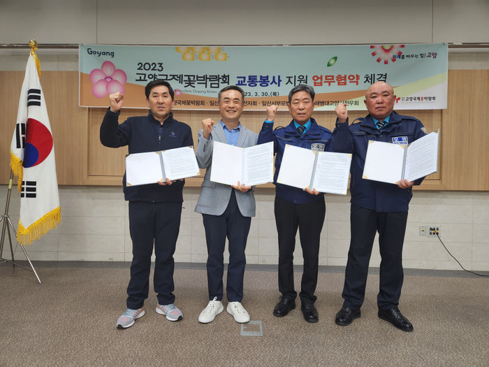 [사진설명] 2023고양국제꽃박람회 교통봉사 지원 업무협약식.