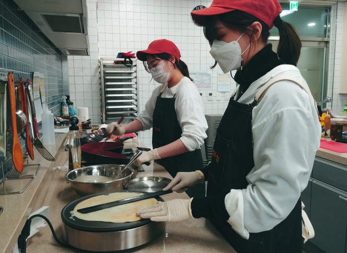 ‘봉주르 크레페’는 4명의 청소년들이 기획한 가게로, 특성화고 조리디자인과 학생이라는 전문성과 재능을 살려 자신들이 꿈꾸는 창업에 도전하게 된 팀이다. 작년 6월부터 지금까지 창업 기획 회의, 시장 분석, 메뉴 개발, 시제품 제작, 고객 시식회 등을 직접 실천하며 가게 운영을 성실하게 준비해왔다. 작년 판매에서 부족한 점을 보완하여 한 단계 발전된 모습으로 2월 20일 토요일과 21일 일요일에 1~2차 판매를 진행했으며, 2월 27일 토요일과 28일 일요일에 3~4차 판매를 앞두고 있다.